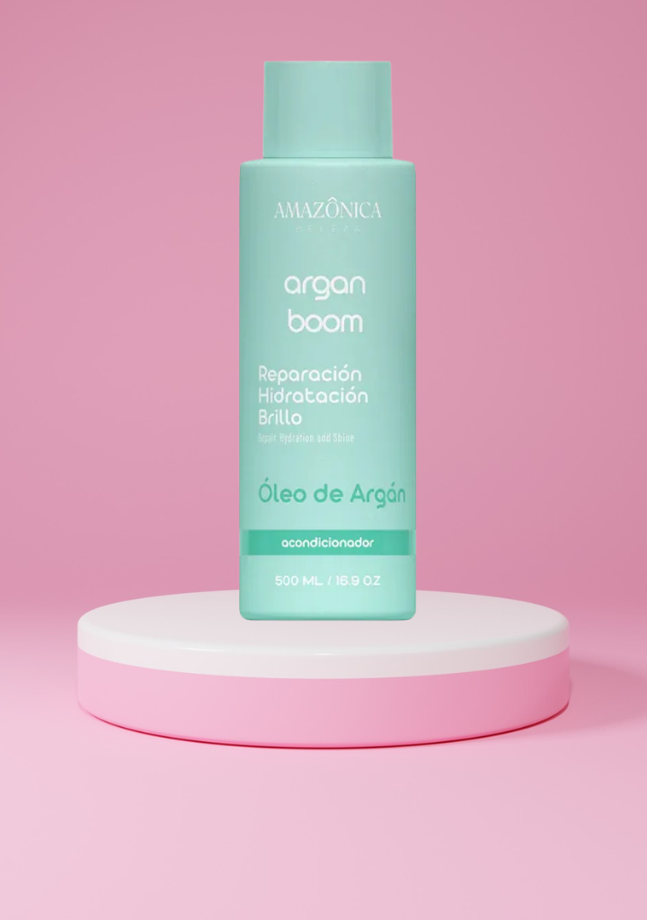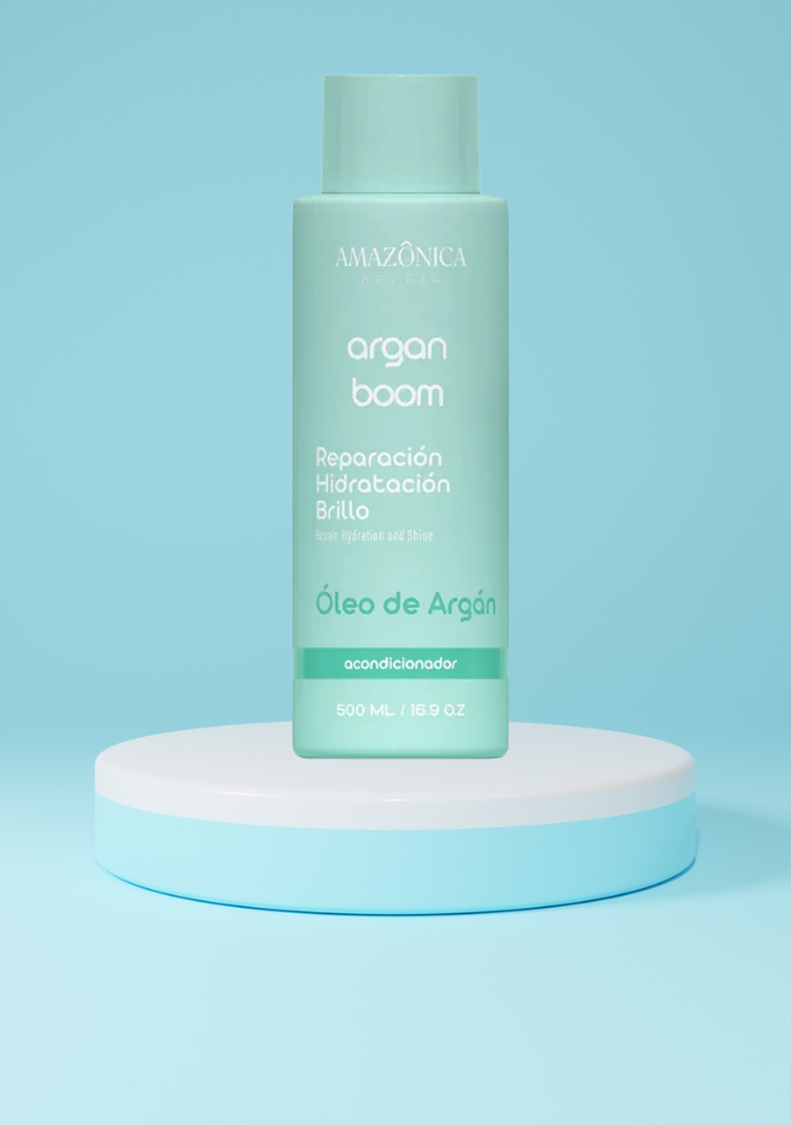 AMAZONICA Acondicionador Argan Boom – Acondicionador capilar 500 ml con aceite de argán y vitamina E diseñado para hidratar profundamente, nutrir y suavizar el cabello. Su fórmula ayuda a fortalecer desde la raíz hasta las puntas, facilitando el desenredo, aportando brillo natural y una textura sedosa y manejable. Ideal para todo tipo de cabello, especialmente el seco, dañado o tratado químicamente.