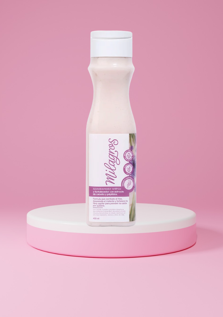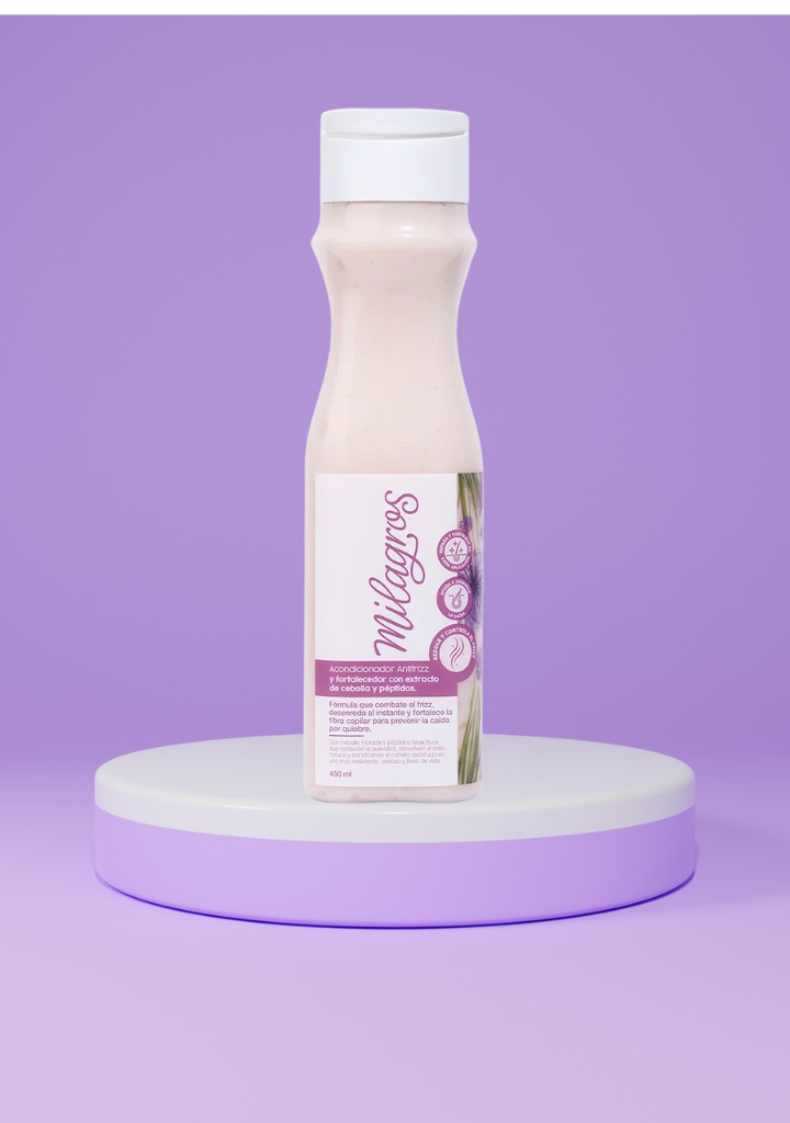 Un acondicionador de cebolla de la línea Milagros es un producto capilar formulado con extracto de cebolla morada, péptidos y aminoácidos, diseñado para complementar tu rutina de lavado tras el shampoo. Su función principal es desenredar y suavizar el cabello, aportar nutrición profunda, reducir el frizz y fortalecer la fibra capilar para prevenir el quiebre y la caída debido a la fragilidad. La combinación de estos ingredientes también ayuda a mejorar el brillo y la manejabilidad, dejando el cabello más sedoso y con mejor aspecto general.