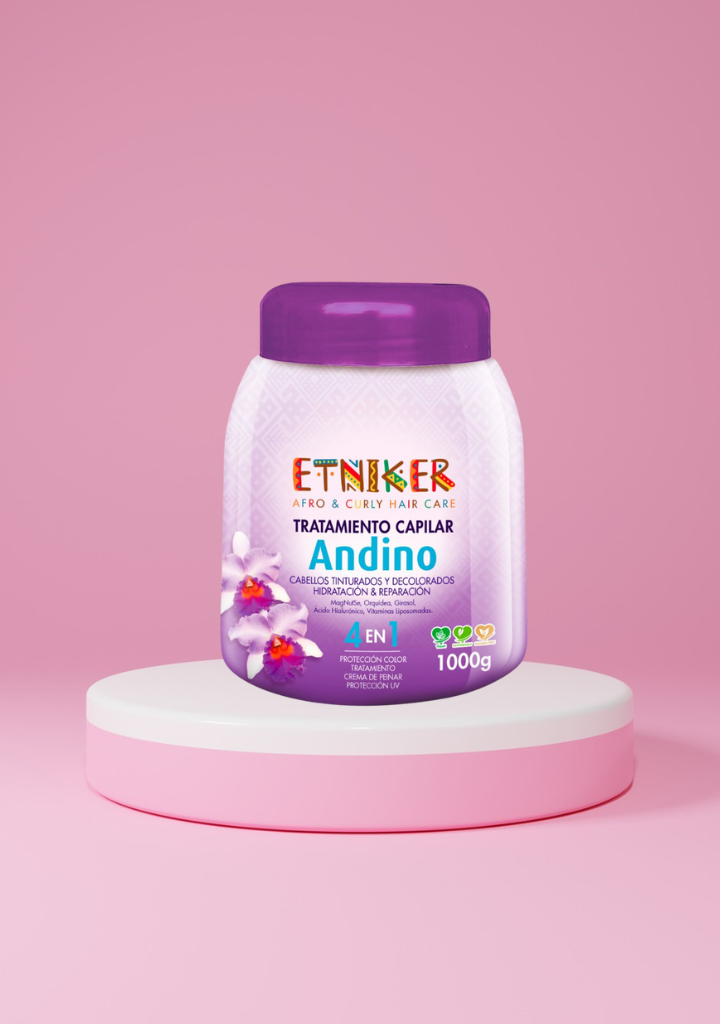 Repara, fortalece y revitaliza tu cabello con el Tratamiento Andino de Etniker, una fórmula intensiva inspirada en los nutrientes naturales de la región andina. Su combinación de ingredientes activos hidrata profundamente, restaura la fibra capilar y devuelve el brillo natural al cabello.