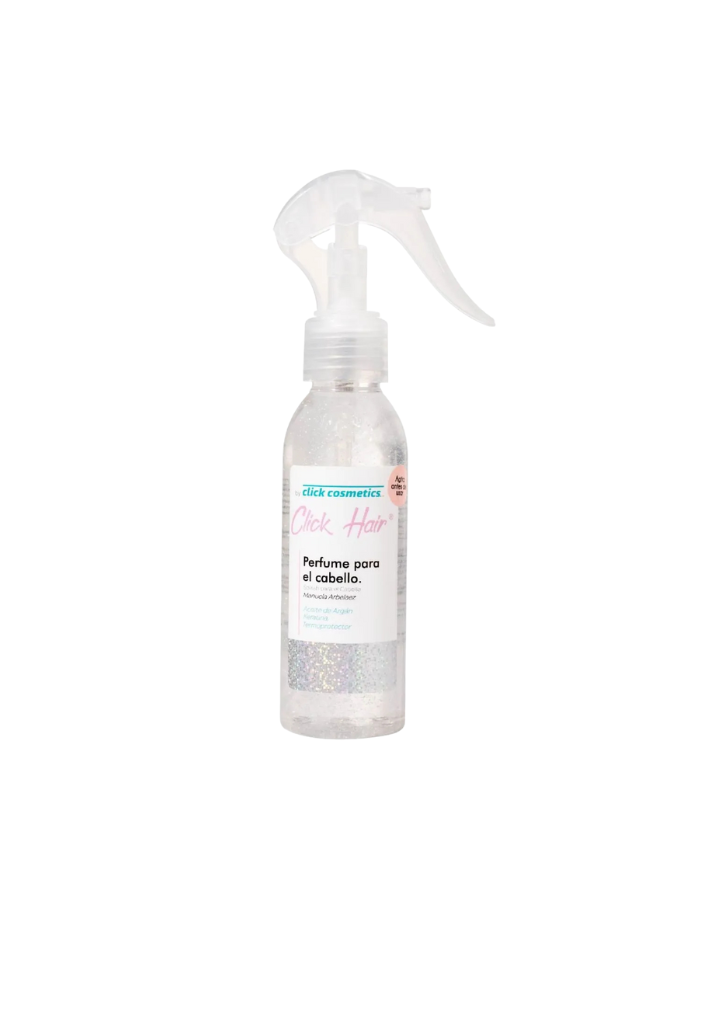 Descubre el toque final perfecto con el Perfume para el Cabello Transparente Gloss de Click Hair. Su fórmula ligera deja el cabello con un brillo espejo, un aroma delicado y duradero, y una sensación de frescura inmediata.