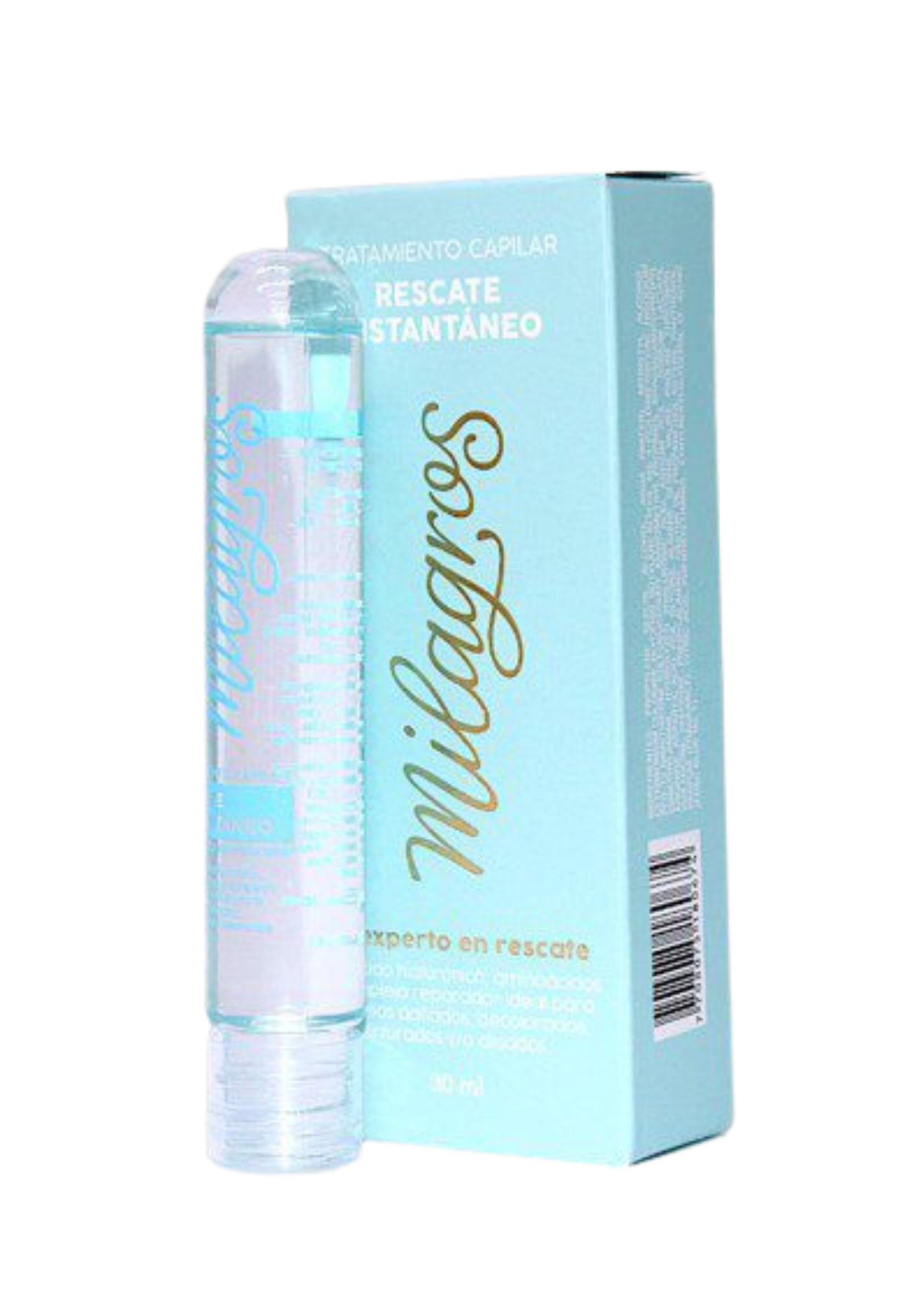 Descubre el Tratamiento Rescate Instantáneo Milagros, una formulación potente e instantánea que combina ingredientes avanzados con tecnología plex de reparación capilar. Este tratamiento único proporciona al cabello brillo, suavidad, fortalecimiento, sedosidad y vitalidad en un instante.
